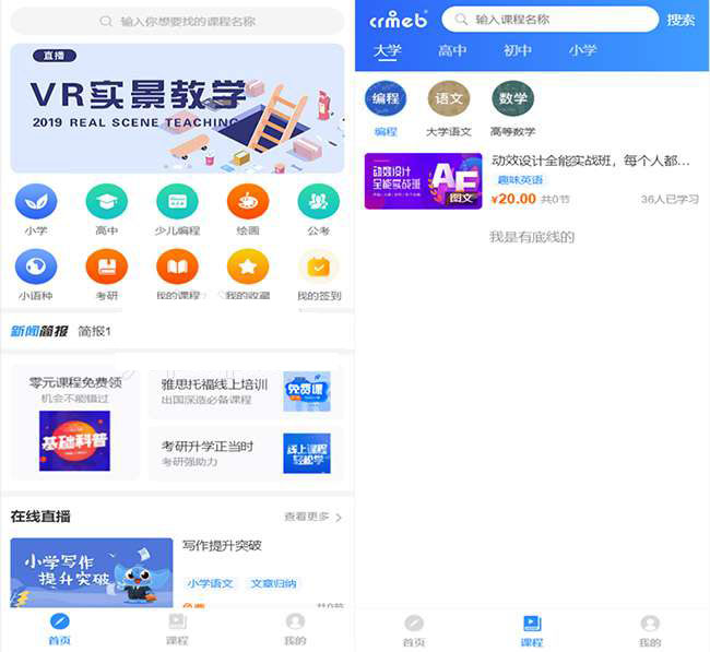 CRMEB知识付费系统其主要由课程系统、分销推广、付费会员、营销活动、支付、客服系统、文章管理、登录注册,微信模板消息通知等九大功能模块构成,囊括了在线教育及知识付费的大部分主要功能,支持在线推流直播、直播回放功能、录播功能、图文专题、音频专题、课程弹幕等重要基础功能,其源码全开源,无加密,完全适合企业二次开发。