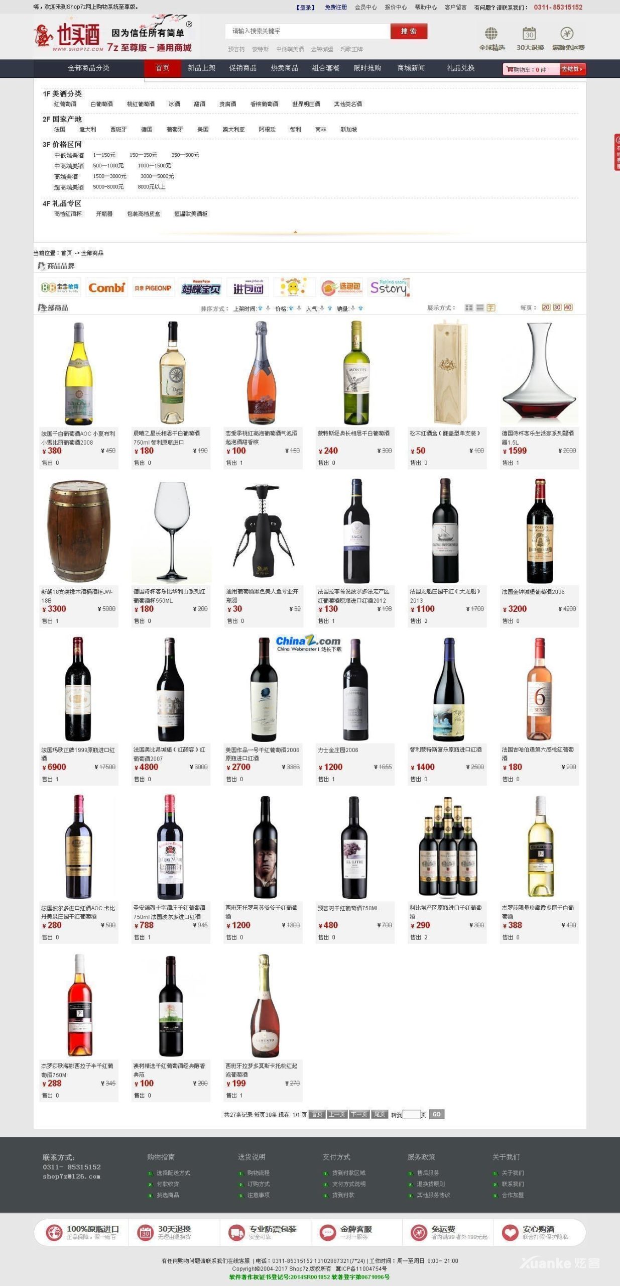 Shop7z网上购物系统支持电脑版+手机版+支付宝及微信支付,支持QQ和微信一键登陆,系统集众家之所长,大气超美观页面+手机版+商品组合套餐+限时抢购秒杀+图片批量上传+淘宝数据包导入+弹出式分类菜单+不同规格不同价格+新订单邮件通知+销售报表打印与Excel输出+物流跟踪打印查询+会员积分及优惠券+邮件群发+图片在线管理+销售统计报表+五种价格体系+礼品礼券+微信公众号支付+扫码支付等等等。