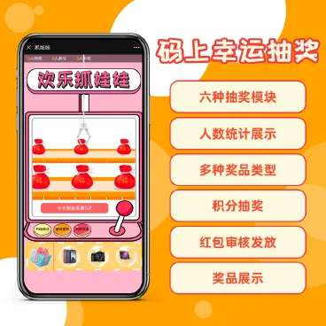 码上幸运抽奖合集是一款有多种展示形式的抽奖模式,后台可选择不同的主题进行配置,用户在前台可以根据后台设置的游戏规则进行抽奖,这款合集调动用户的积极性,让用户有着享受游戏过程的体验,游戏展示多样化,功能后台可以自主设置