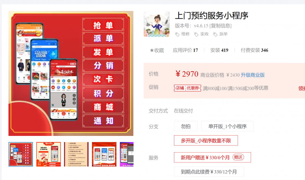 上门预约服务小程序V4.7.94;多开版、小程序数量不限、小程序版本源码模块;模块比较复杂,源码购买持续包更新,原版加密,可开源,更新了:修复分享师傅打不开的问题