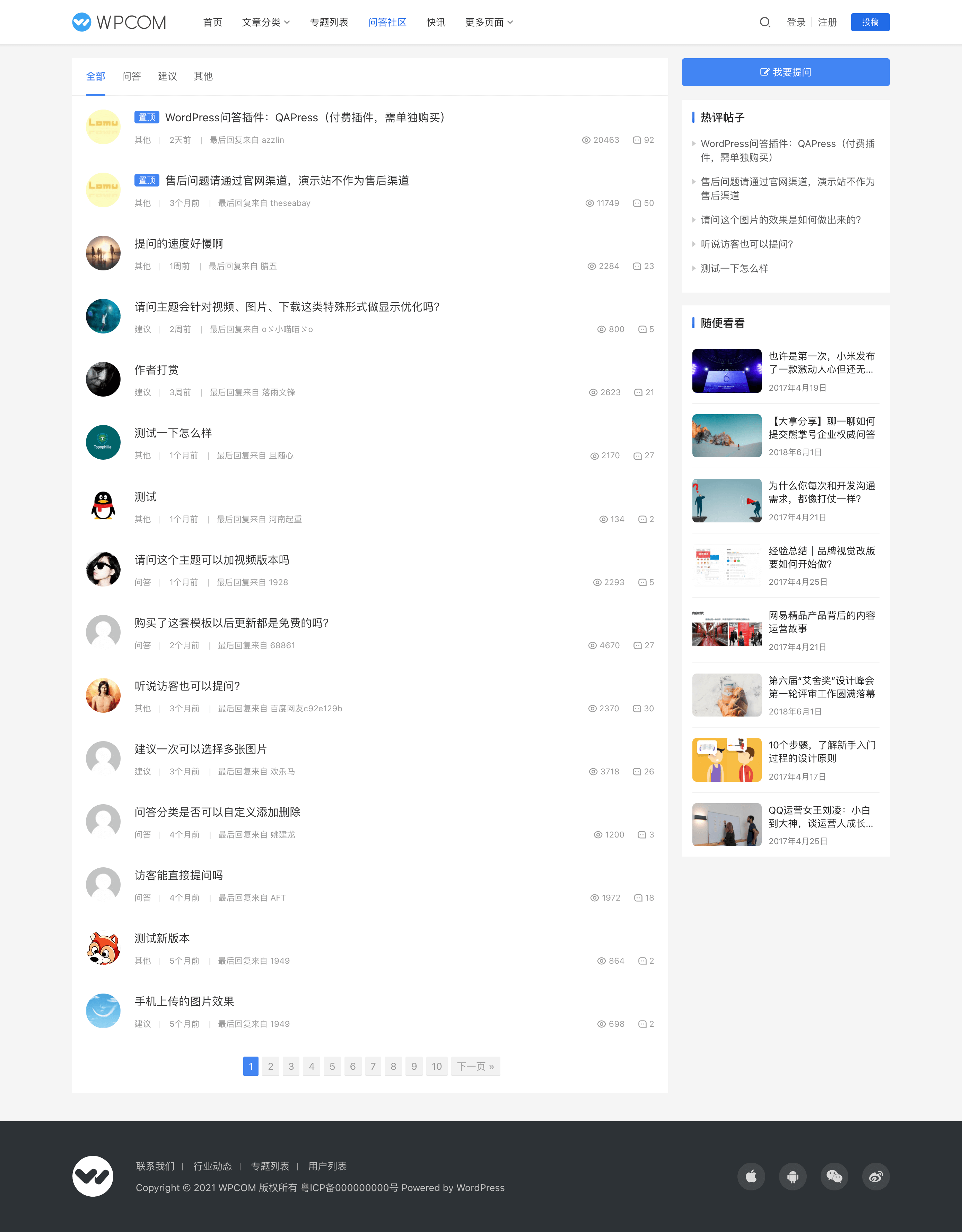 WordPress插件QAPress v2.3.1是由WPCOM团队开发的第一款付费WordPress插件,QAPress旨在为wordpress网站提供一个轻量级的问答系统,方便客户交流反馈问题,同时提升网站形象。