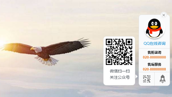 一款漂亮的在线客服漂浮框,支持电脑/平板,有 QQ / 电话 / 返回顶部 / 微信二维码等功能,可以自定义设置离顶部高度距离。
